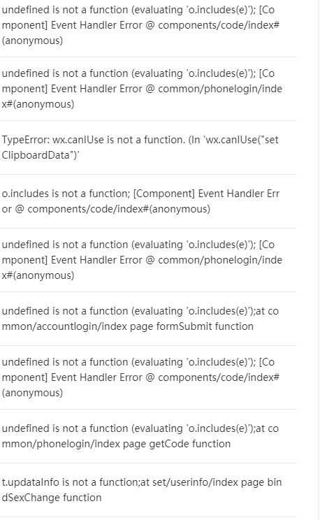 是不是不能使用includes,我的线上也报这个错警报。而在真机测试里并没有这个错。急求回复