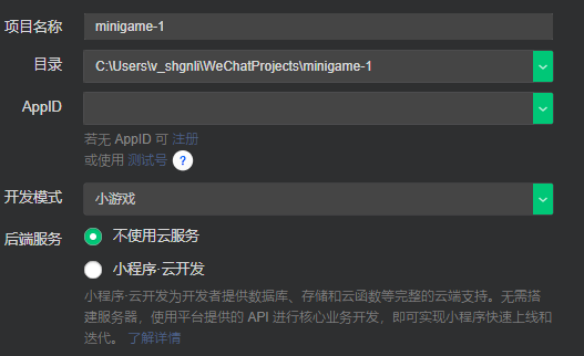 新建小游戏项目时为什么只能选择云开发? 选择不使用还是会自动跳到云开发