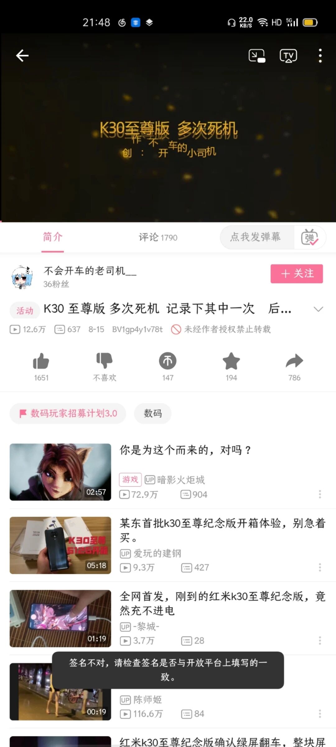 bilibili分享视频 显示签名不对,请检查是否与开放平台签名一致 求怎么解决