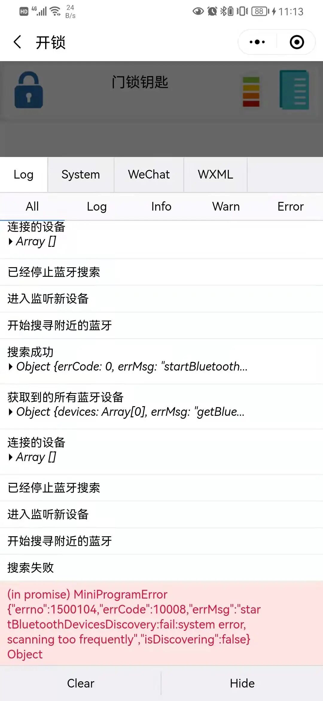 但是提交代码,用体验版体验就搜索不到蓝牙设备了。安卓的定位是开启的状态