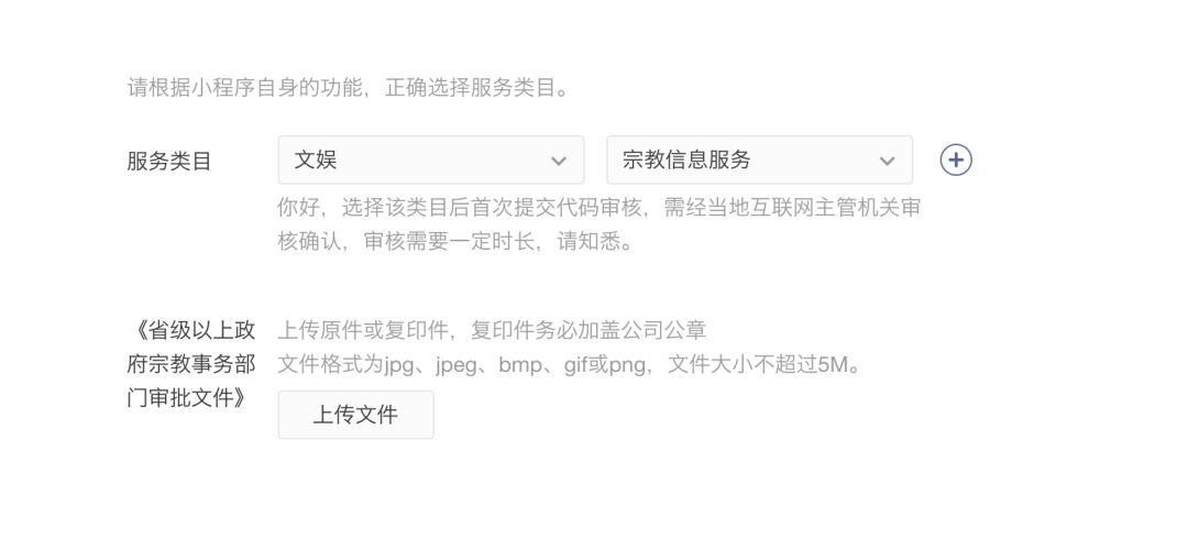 我们是佛教寺院,在申请小程序填写小程序信息时,页面提示需要上传《省级以上政府宗教事务部门审批文件》>>.但官网也没有相关注释或模板,我们也不知道此审批文件的格式和内容是要求怎样的.