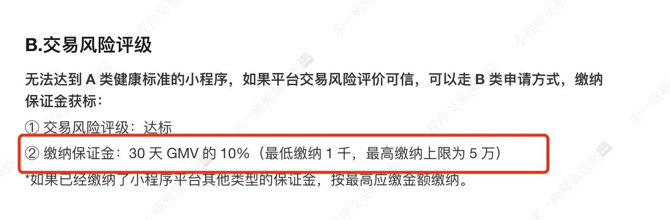 已经按照B类要求的缴纳了超出10% 以上的保证金,缴纳了3w元,但还是没有显示入口。官方大大能不能帮忙查下?AppID(小程序ID)wxee996cf8ef007a3c