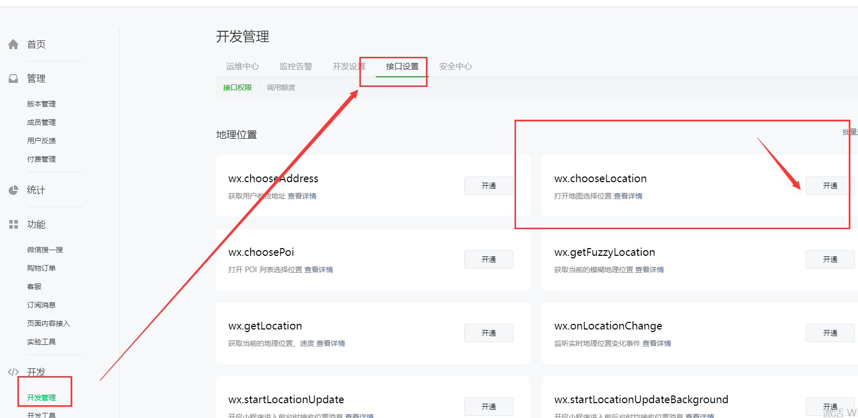 前往小程序管理后台【开发管理】-【接口设置】 申请权限
