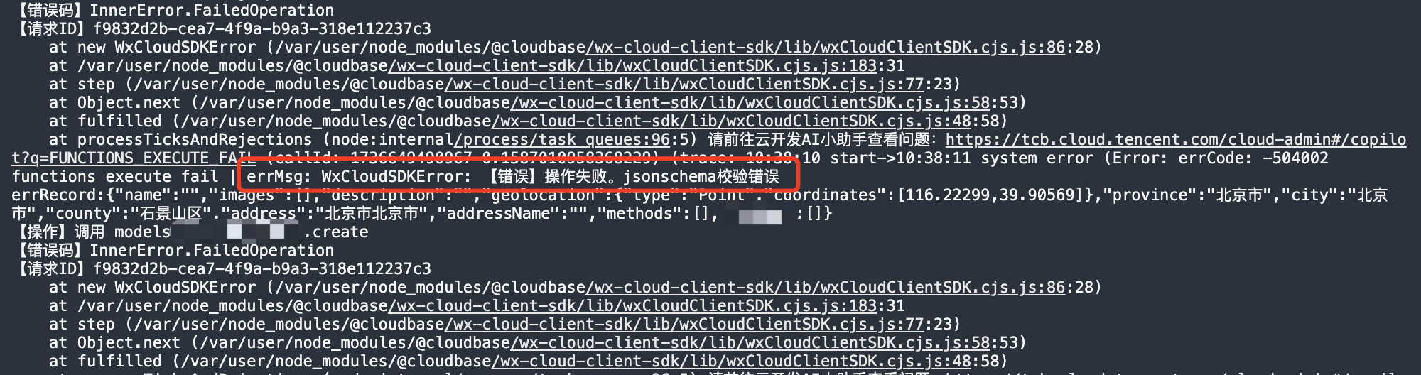 这个模型创建的jsonschema校验给出的结果太模糊了,这样根本不知道是是哪个字段格式问题。
