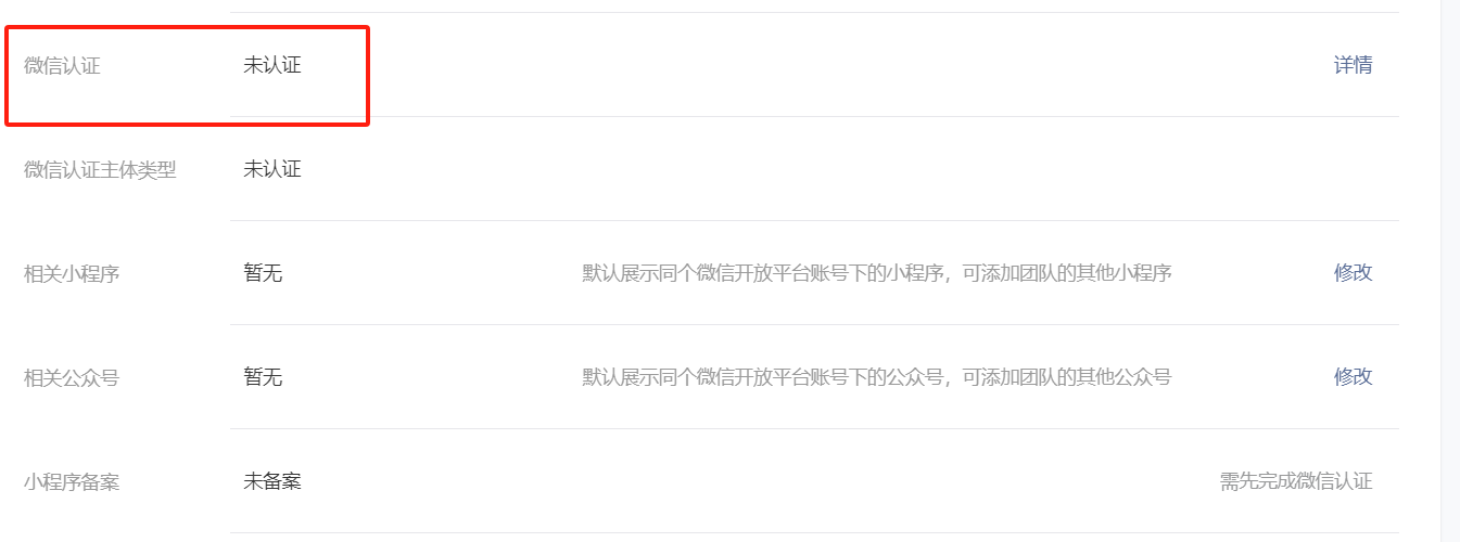 小程序appid:wx1241b07b15b9ad56 小程序明明已经做认证了,为什么有的界面显示已认证,有的有显示没认证?