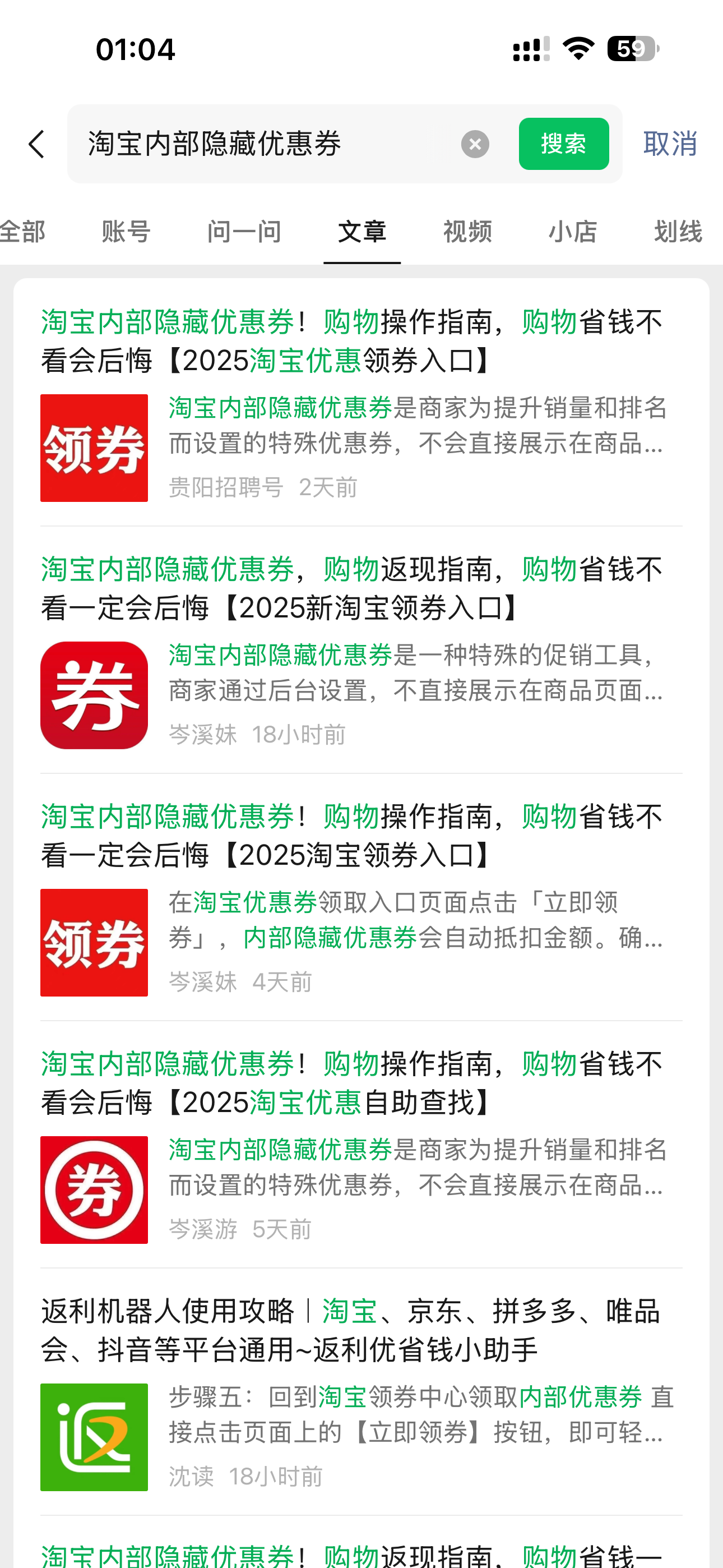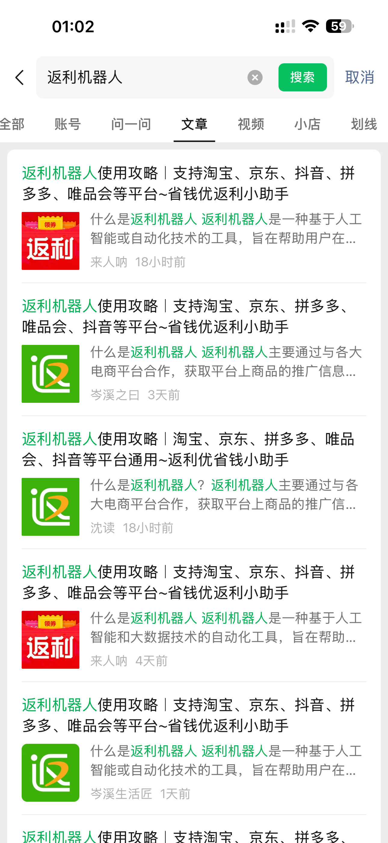 反馈搜一搜发布相同标题的营销文章霸榜搜一搜,都是返利广告倒流到同一个二维码?