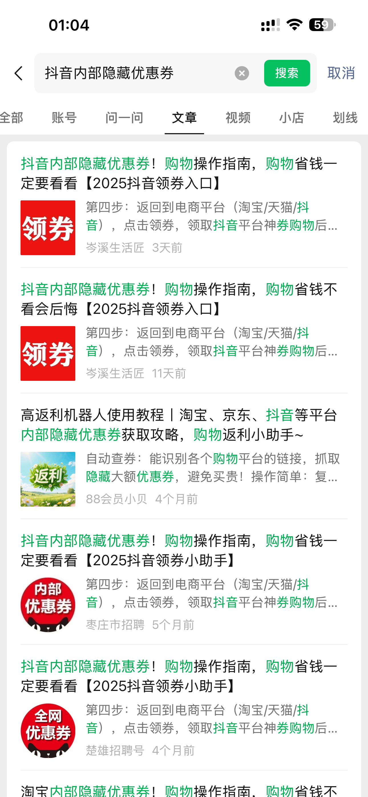 搜一搜霸屏关键词:抖音内部隐藏优惠券
