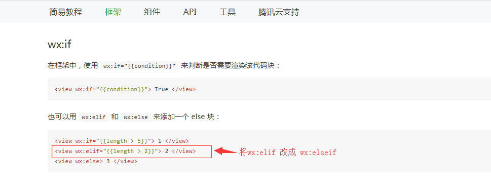 微信文档挺坑的,刚碰到这个问题,wx:elif 换成 wx:elseif 能编译过去,数据显示完全没问题