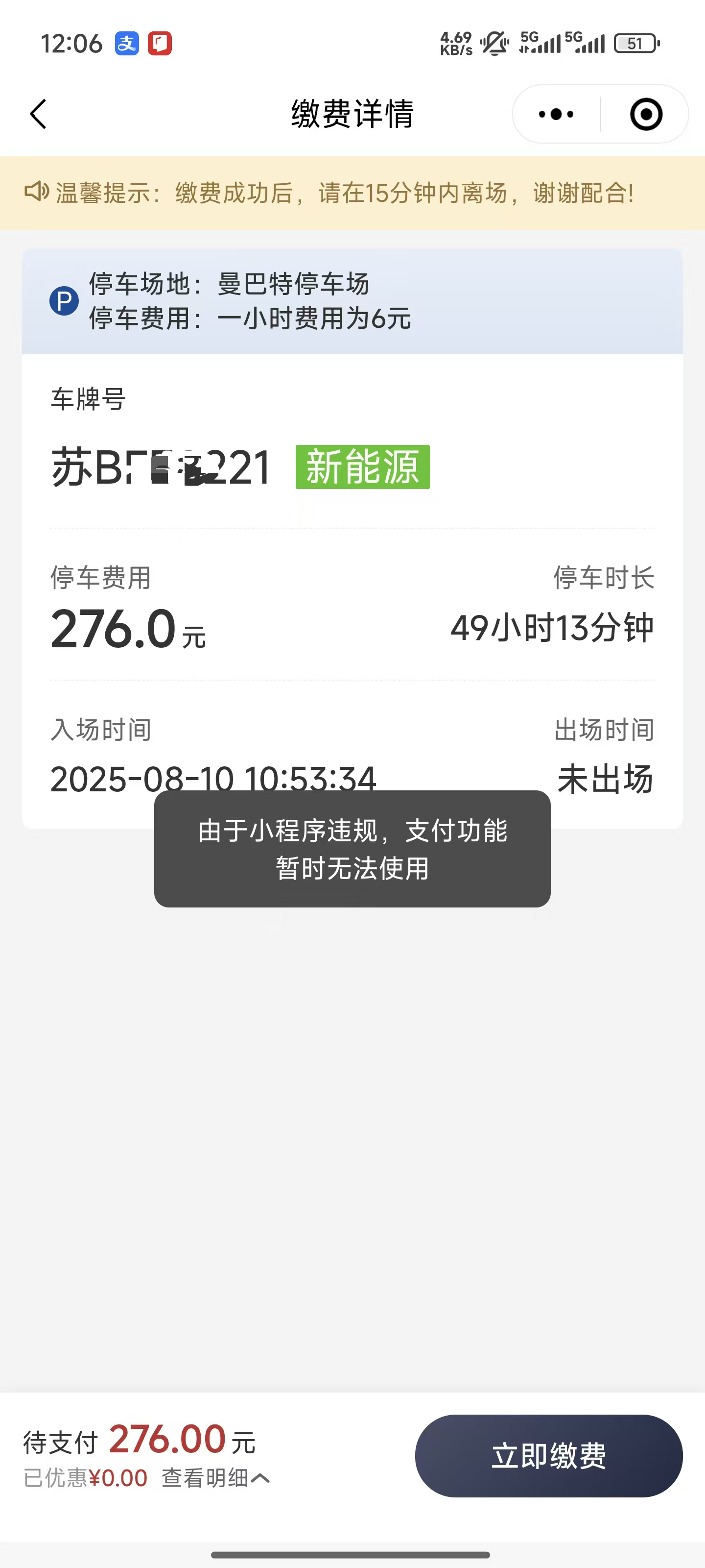 在做支付测试的时候提示“由于小程序违规,支付功能暂时无法使用”