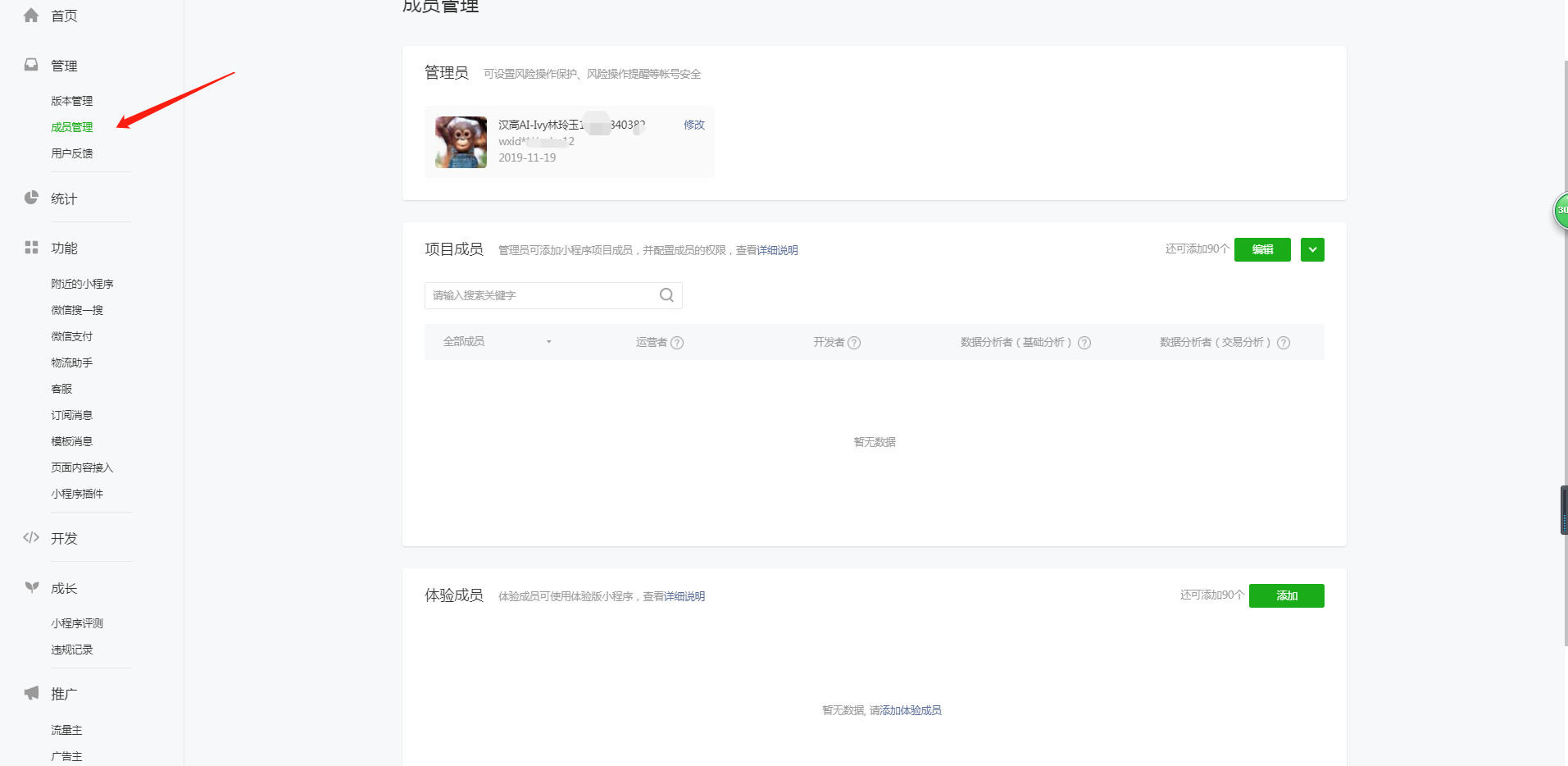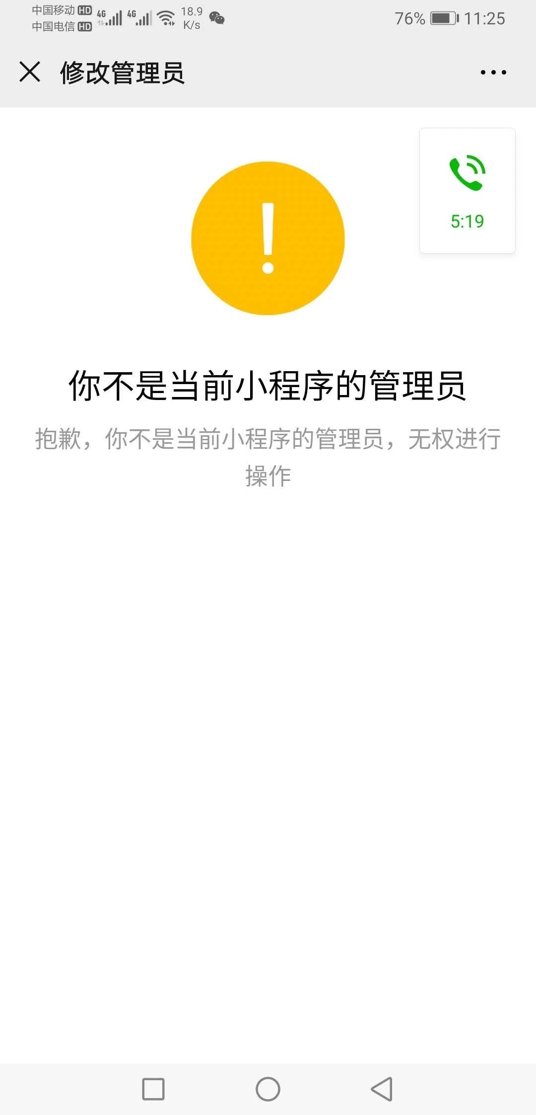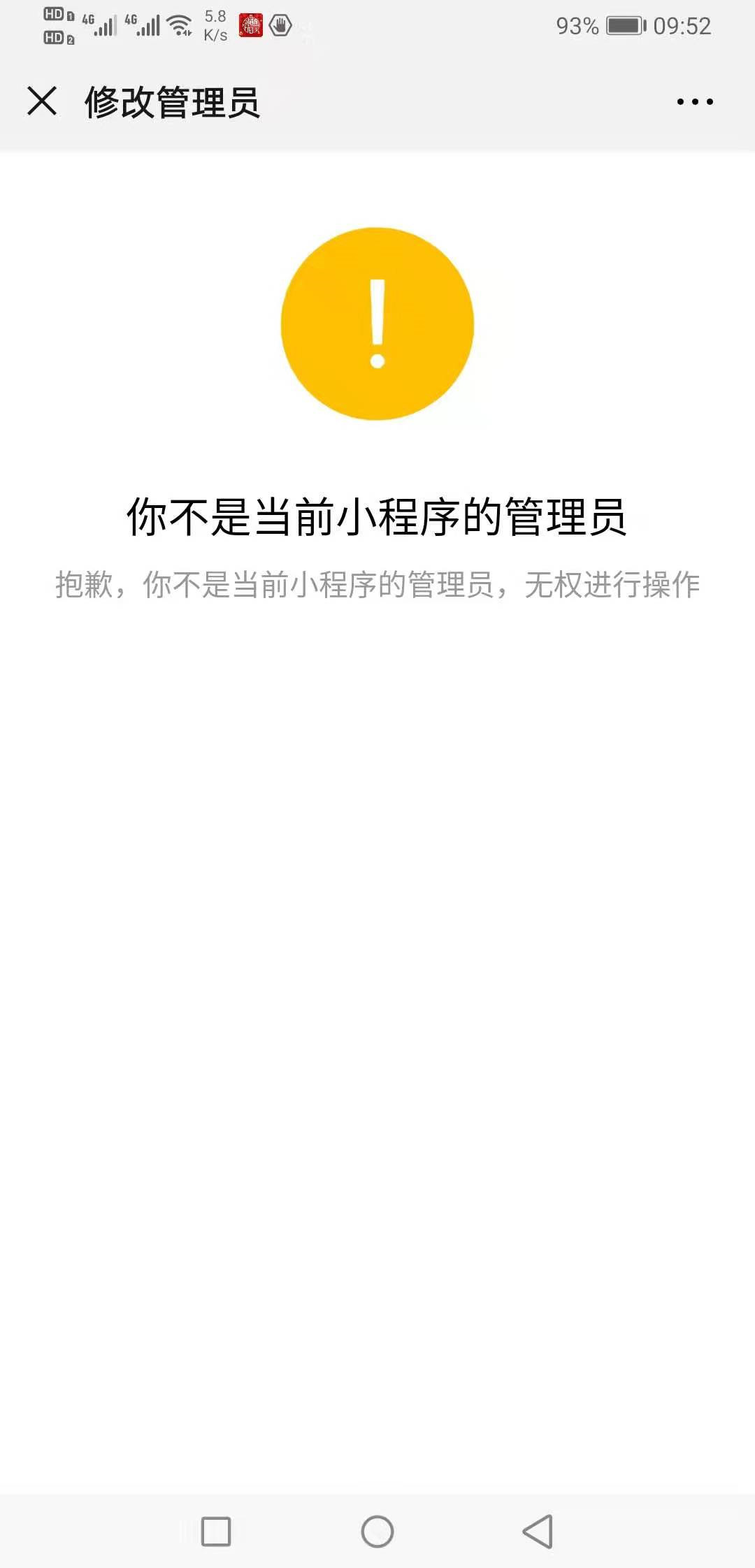 为什么我的小程序在开通附近五公里的时候,出现管理员扫不了码,在首页的成员管理里面的管理员是A开通附近五公里的时候管理员是B但是B扫码显示不是管理员,但是在微信公众号查询绑定的时候,B是有绑定的权限的。A和B 扫码都扫不了,更该管理员也改不了。