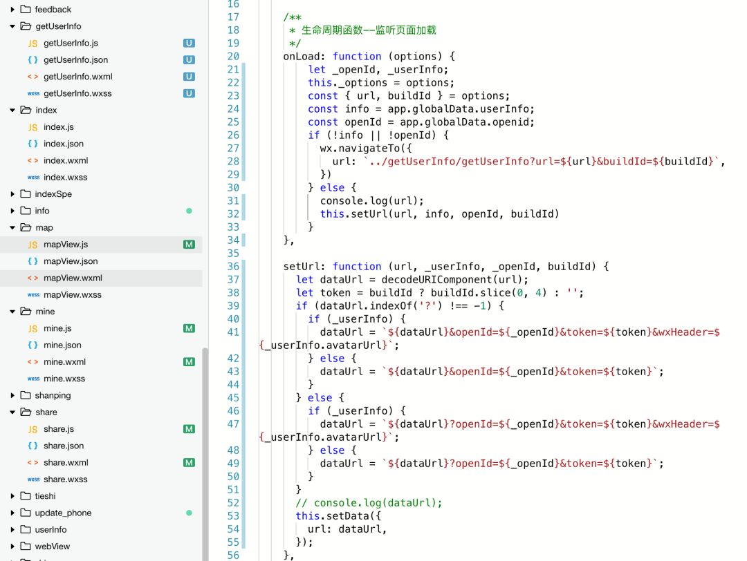 这个是设置web-view url的页面代码。 上面代码有个判断跳转授权页面,做的是授权后携带者url再转回这个页面。