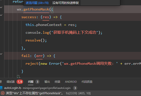 类型“Wx”上不存在属性“getPhoneMask”。