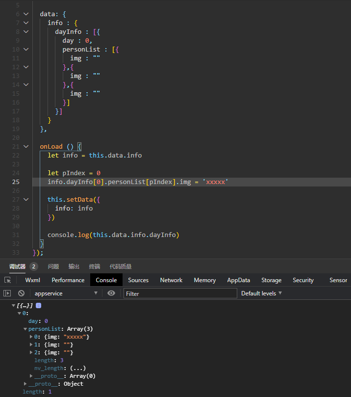 代码如上,赋值完以后打印this.data.info.dayInfo,发现dayInfo[0]下的personList中img全部都是一样的值。