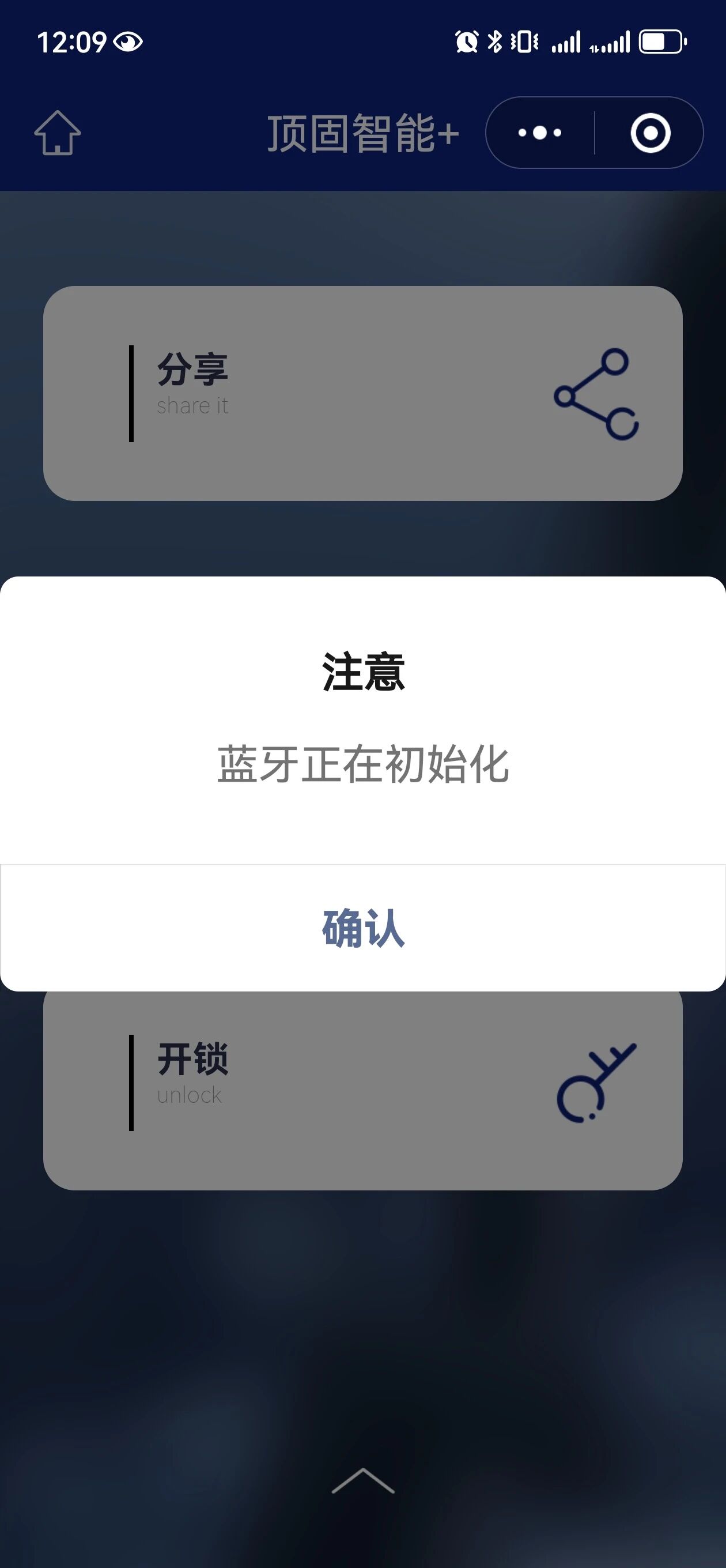 今天使用“顶固智能+”小程序时,只显示“蓝牙正在初始化”,关机清理好几次,还是不能解决,请各位帮忙找出解决办法。谢谢🙏