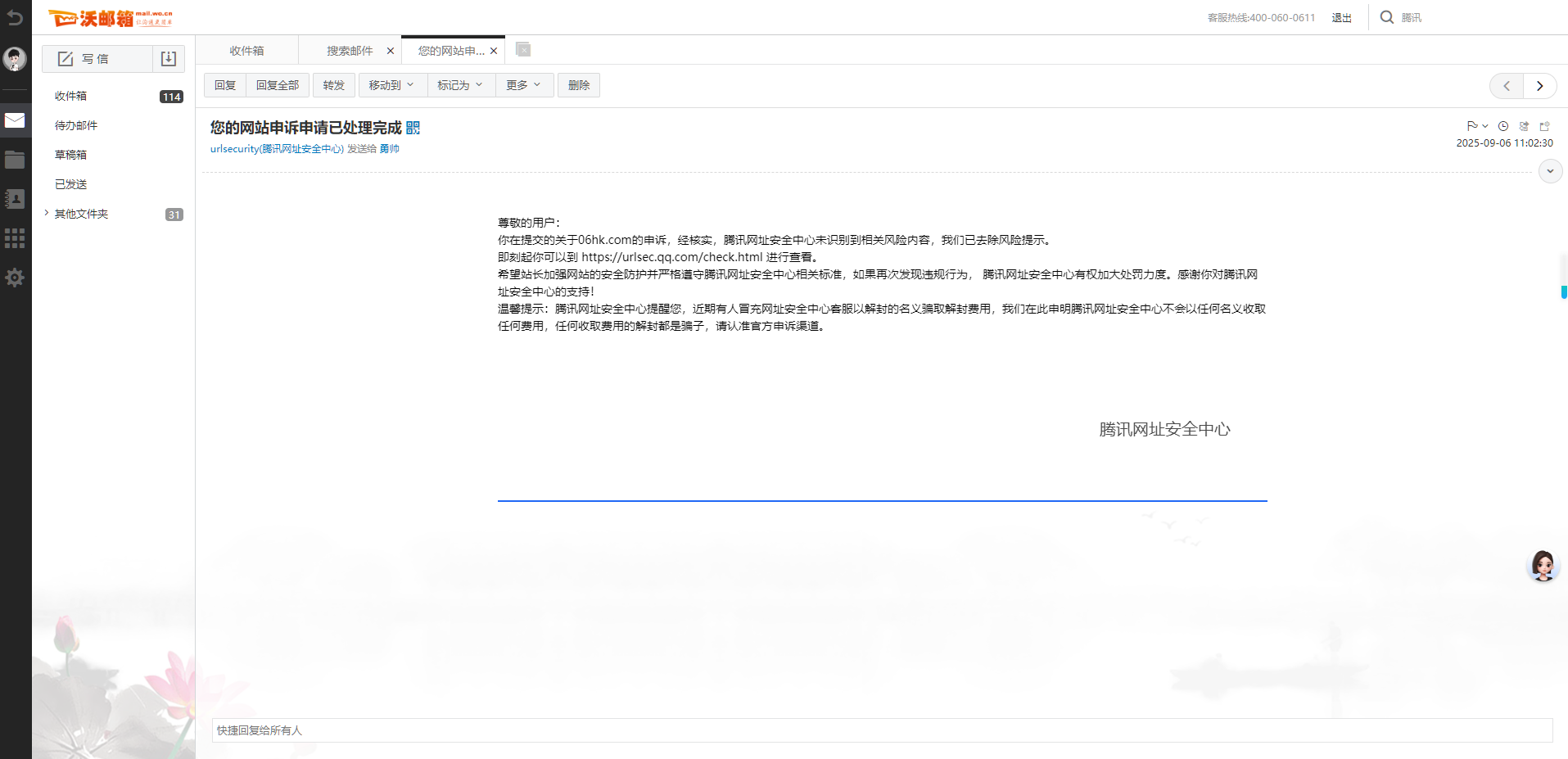 本人在9月初尝试在腾讯网址安全中心进行了申诉,给的结果是:经核实:“腾讯网址安全中心未识别到相关风险内容” , 也尝试在微信中申请恢复但是根本没有任何回复,到现在也是没能解决这个问题。如果有问题请指出问题,要是没有问题还请放行,谢谢