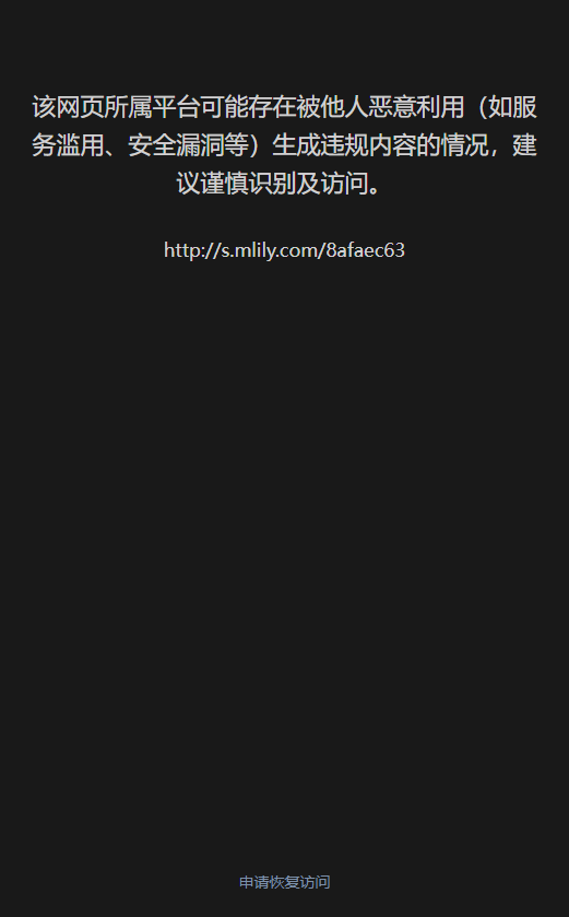 你好,经核实,域名mlily.com 下的链接【http://wechat.mlily.com/?823630,228,19】的内容存在违反《微信外部链接内容管理规范》的第3.2条“恶意违规类内容”,现经核实相关违规内容已修改,现予已恢复微信内直接访问的服务,另核实该域名存在安全漏洞,建议修复相关漏洞,避免再次违规,请知悉。详细规则请参考《微信外部链接内容管理规范》http://weixin.qq.com/cgi-bin/readtemplate?t=weixin_external_links_content_management_specification