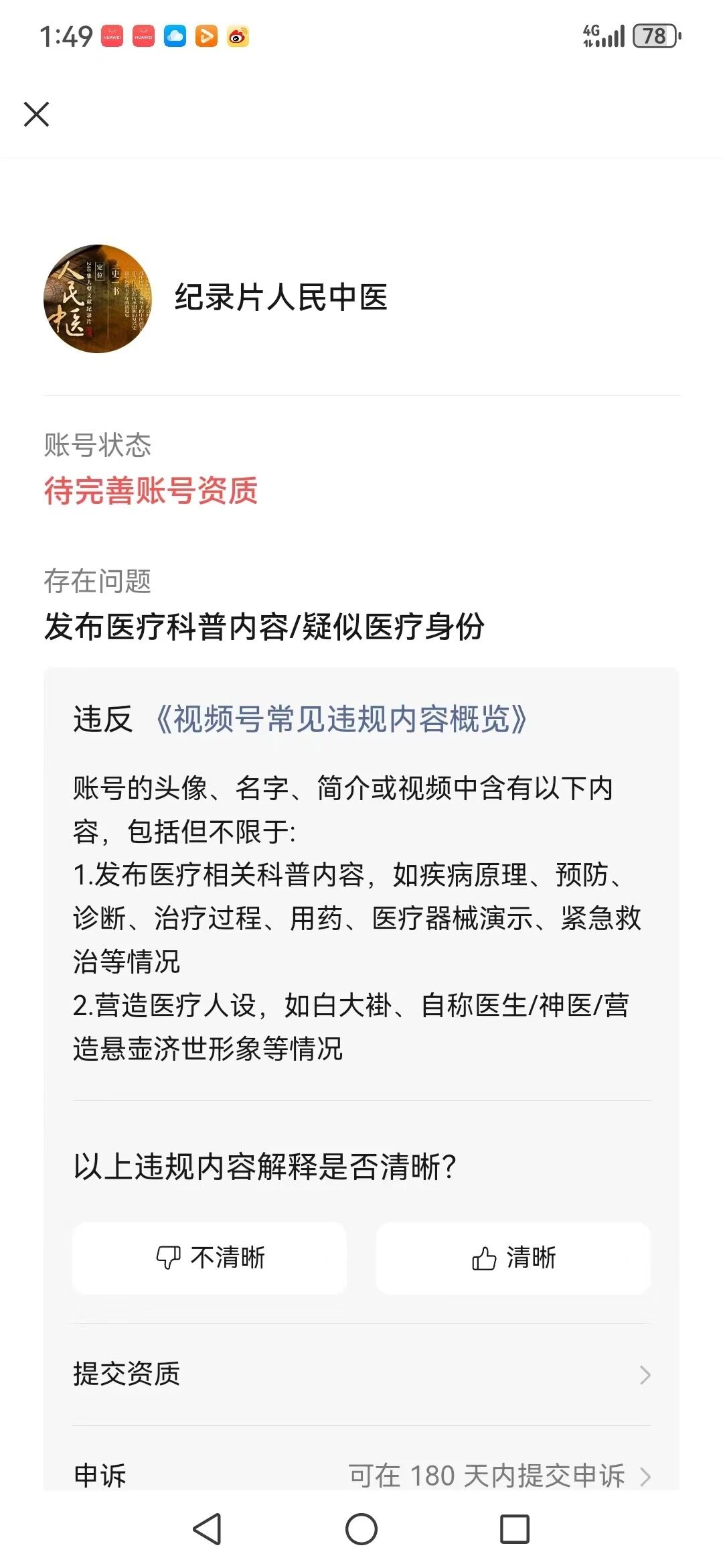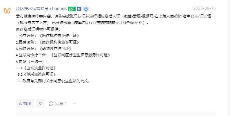 我们账号是一部中医药题材纪录片的官方账号,难免会涉及到医生出镜以及医疗行业镜头,会涉及到医疗健康类内容,但是此类内容经常被判定为缺乏资质导致的违规,我们账号是出版行业的企业认证,有《广播电视节目经营许可证》和《作品登记证书》,请问还需要什么样的资质才能被允许发布上面提到的内容?