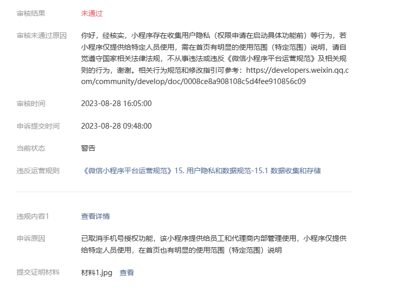 申诉结果已通过站内信下发,可在mp后台登录查看详情根据站内信指引完成整改后重新发起申诉即可。