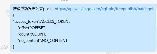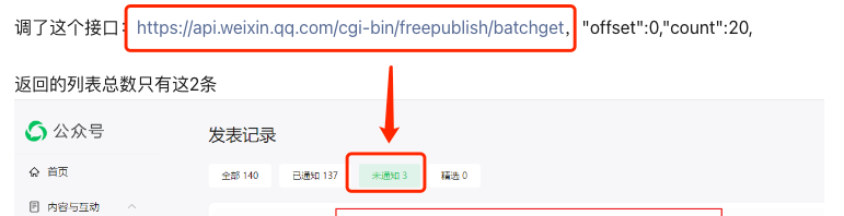 调了这个接口:https://api.weixin.qq.com/cgi-bin/freepublish/batchget,"offset":0,"count":20,