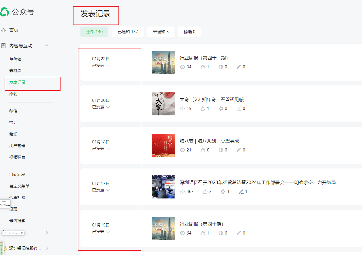 目前接口只能获取到未开启群发通知的内容,开启群发通知的内容暂不支持获取,没有相关接口。
