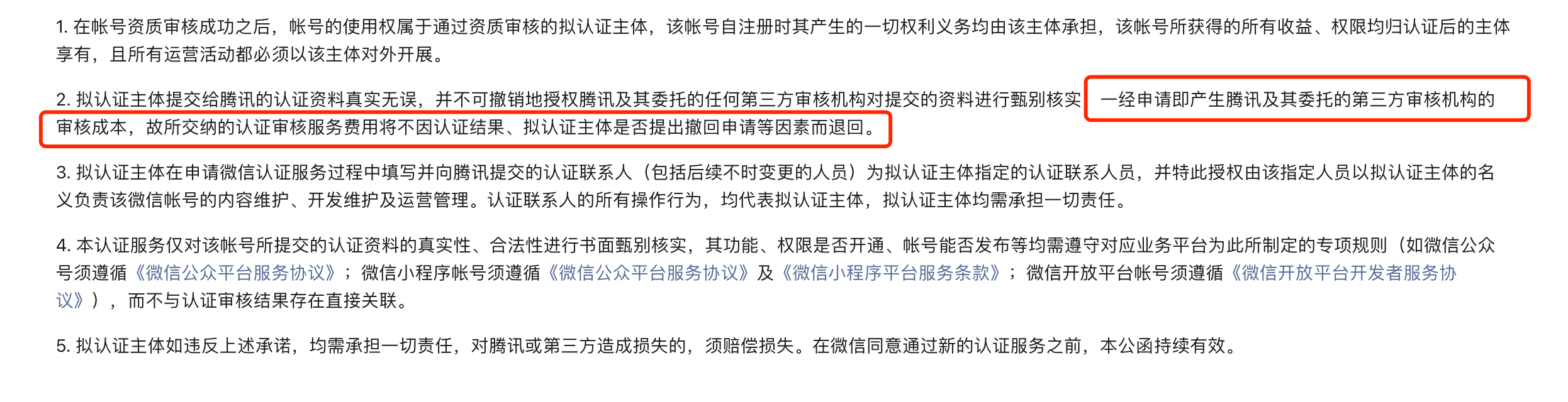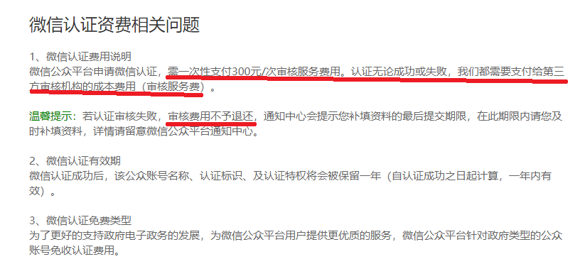 你好,如公众号认证失败,费用不予退还,原因见图: