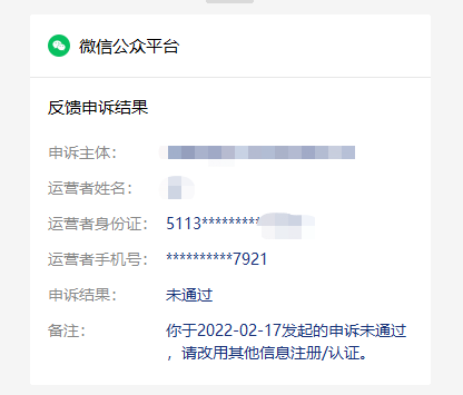 今天在注册微信公众号的时候,提示该主体信息暂无法使用,涉嫌恶意注册,点击申诉后,结果未通过,不知道什么原因?
