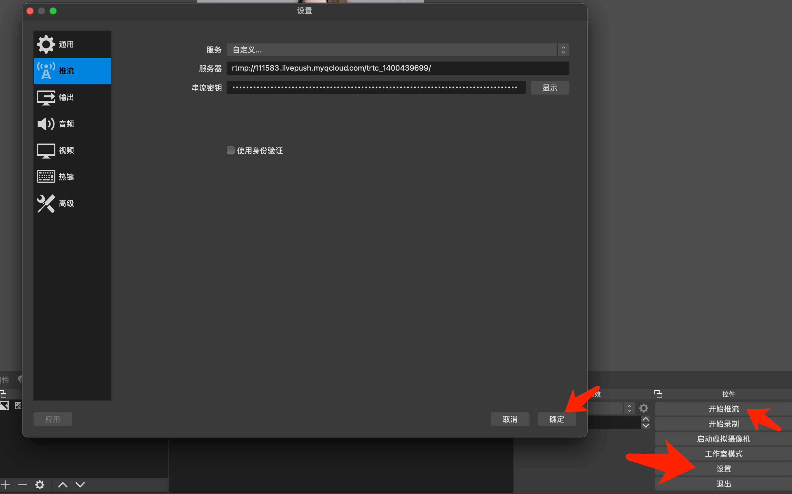 如图,一直显示直播流检测中,开始直播按钮无法点击
