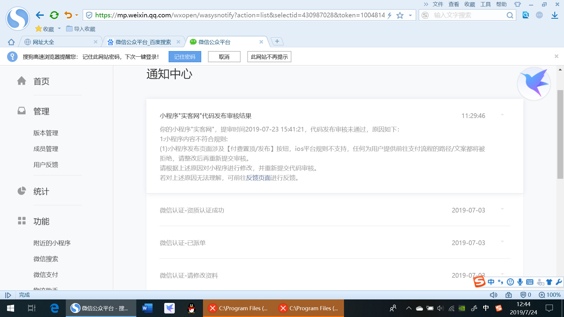 你好,经核实,贵方小程序最新提审版本打开后只有title和底部button,无具体运营内容,无法体验实际服务,请上架完整内容后再提交代码审核