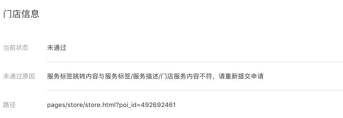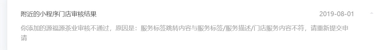 你好,由于服务标签的跳转内容与服务标签需要保持一致,由于贵司的小程序暂未上架,无法判断您的小程序内容是否包含线下服务或者提交的门店服务标签跳转内容与服务标签是否一致;另外,暂未发布或不可见的小程序无法展示在”附近的小程序“内,建议贵司可先上线相关的小程序。详情请参考附近的小程序使用指南”:http://kf.qq.com/faq/170401MbUnim17040122m2qY.html;或参考《附近的小程序使用指南》:http://kf.qq.com/faq/170401MbUnim17040122m2qY.html
