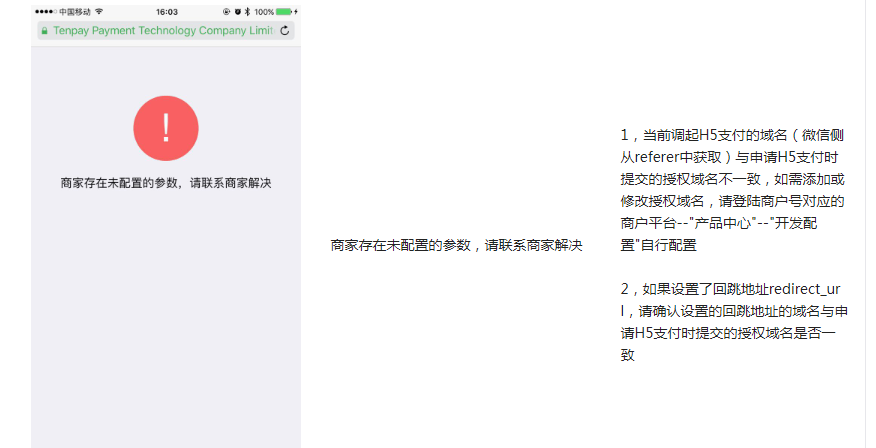 商户后台已经配置了snssdk.com域名,支付回调链接mweb_url请求也有些带referer参数,但结果提示“商家存在未配置的参数,请联系商家解决”,求助求助求助