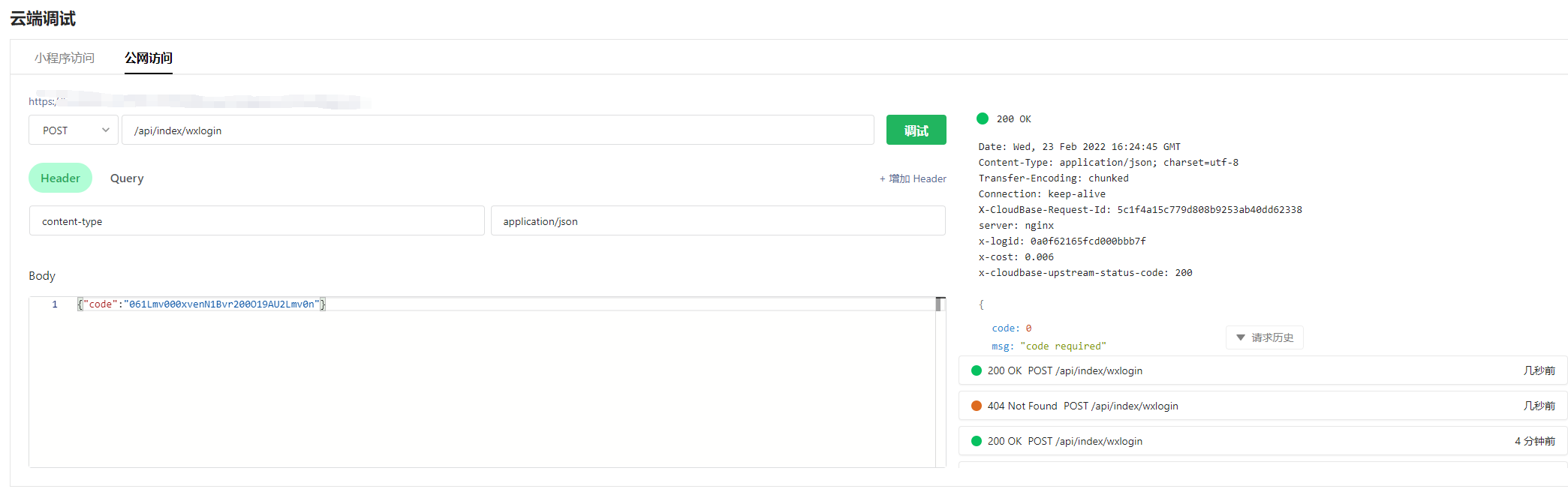 你好,请问代码内有没有使用 x-wx 系列的 Header?公网访问无法获取微信信息,小程序访问才有登录态等 Header。