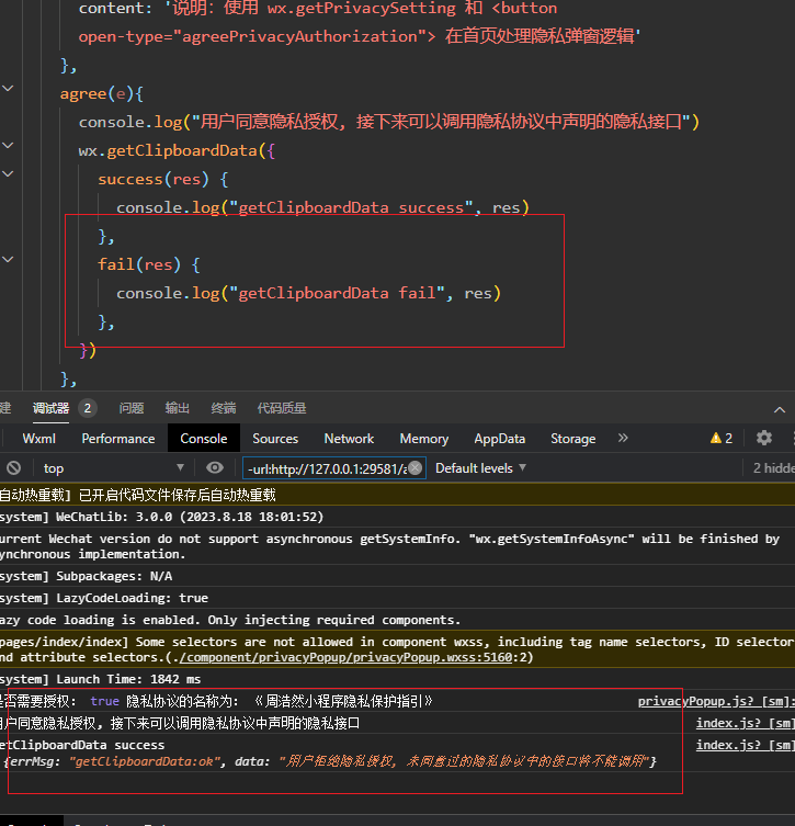 官方的隐私授权弹窗同意可以没有回调,但是拒绝的回调在哪里?怎么用呢?