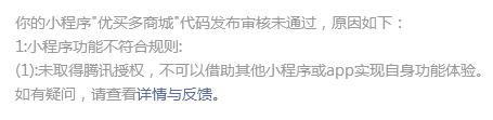 企业小程序提交审核不通过,理由如下图,我们是独立的小程序,并没有借助其他小程序或app实现自身功能,能否指明下如何修改呢,实在不知道该怎么修改通过了,谢谢!