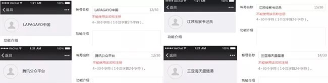 为了避免不法分子使用企业、名人、政府、媒体等机构名义注册公众号进行不良行为,故对此类名称进行保护。