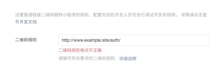 配置小程序普通二维码时,使用.site域名,发现一直提示二维码规则不正确