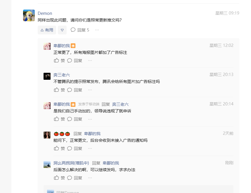 完全没有第三方营销内容 只有自己认证公司品牌产品的内容今天也遇到了这样的情况。而且我还去检查了小程序绑定,超链接这块用的也都是自己小程序关联好的。但还是收到,推文还没发,不知道发了会咋样。。。