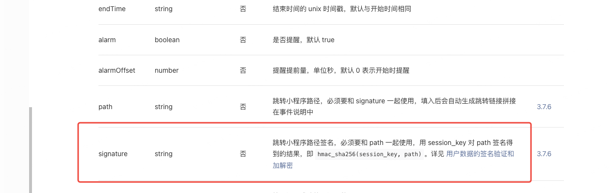 按文档说明,我用wx.login 获取到 code,调后端接口用code拿到sessionKey,然后hmac_sha256(session_key, path)拿到signature,添加日历的时候报错{"errno": 0, "err_code": "1032", "errMsg": "addPhoneCalendar:fail invalid signature"}
