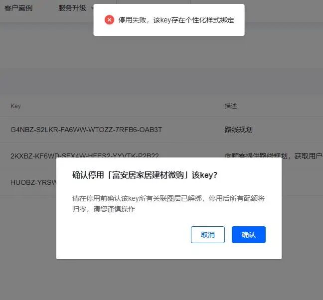 停用失败,该key存在个性化样式绑定,如何解绑。不知道是哪个小程序在用这个key