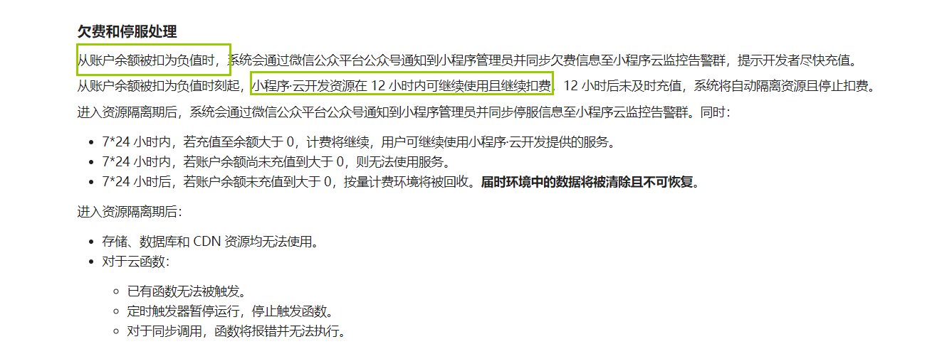 云开发资源开通按量付费模式,“账户余额被扣为负值”这里的计算周期是多长?按自然天计算?然后扣为负值时继续扣12小时这里可不可以设置额度限制,比如如果我的小程序被攻击了12小时刷了100w的云资源使用费,我岂不是要欠费100w?这里有没有安全机制?
