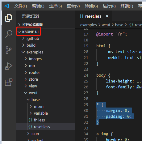 /* kbone-ui / reset.less 中不应该出现这个 *//* 重置不应该这样写 */* {margin: 0;padding: 0;}原因:
