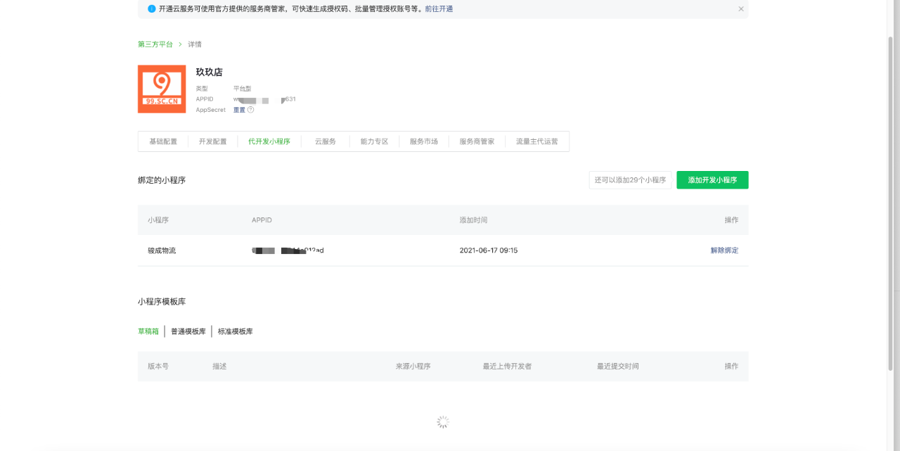 2、如果你不知道是哪个服务商,开发工具里打开这个小程序,详情里有平台名。