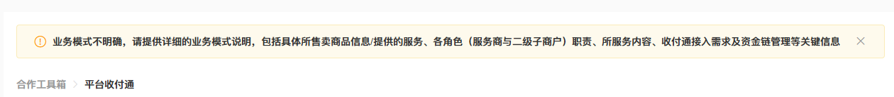 我们的平台类型是“自营与第三方交易平台”,没有上传业务说明函的入口,现在我的商家入驻协议和补充资料中都补充了业务模式的内容,但是还是被驳回了,会是什么原因呢