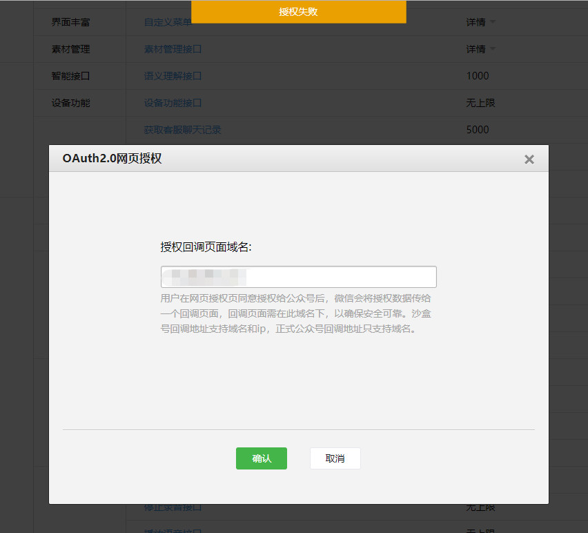 同样的域名,我的测试号填写时提示授权失败。我同事的测试号能正常填写。请问我的号失败的原因是什么,该如何操作才能成功?