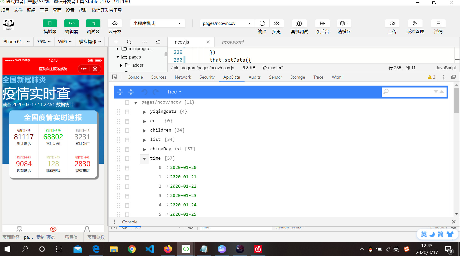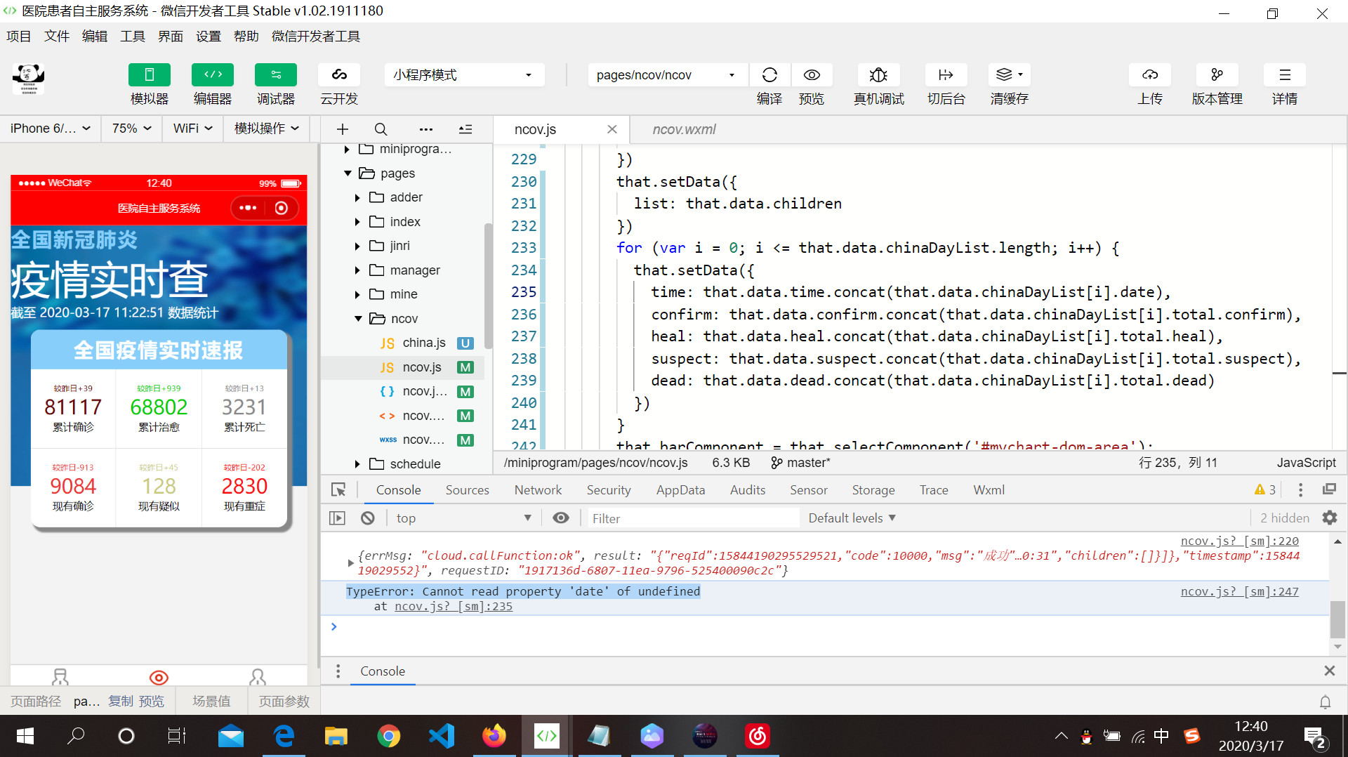 235行报错,数据都能获取出来,但是他就是给我报错说date未定义,但是time数组的数据都获取出来了,是接口问题吗,谢谢了,真的弄了一天了,