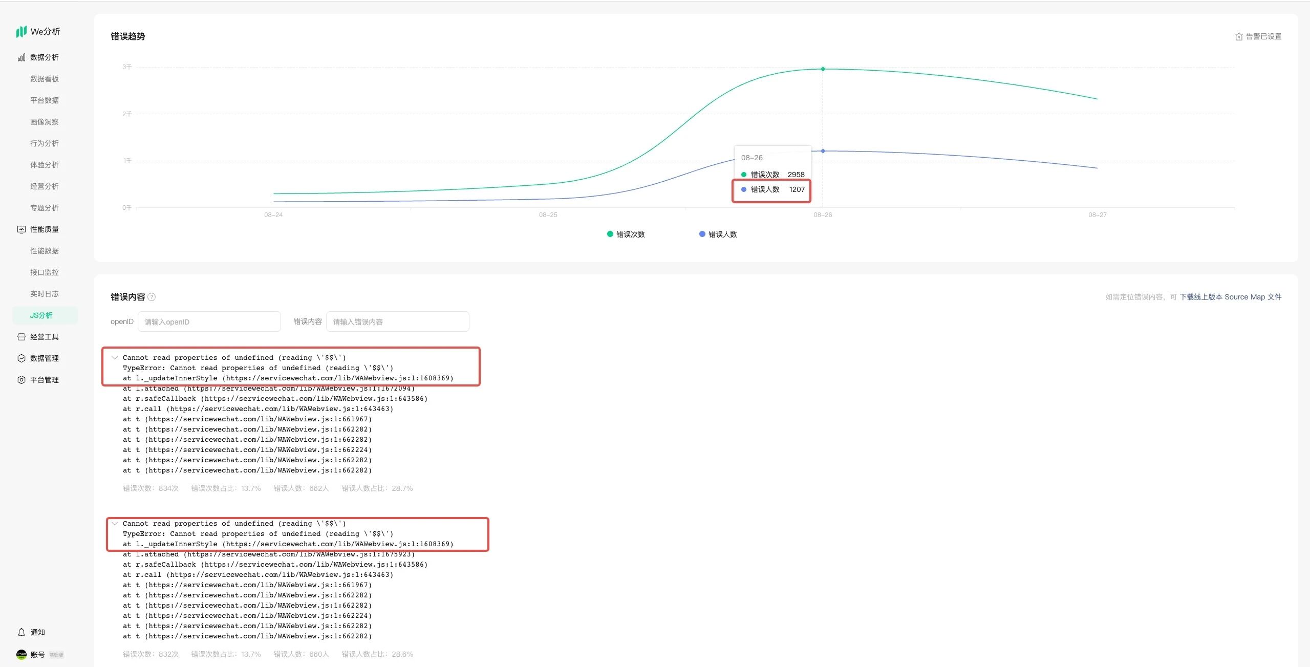 2025.08.27 晚6点,发布新版本。报错开始激增,出现新的报错。