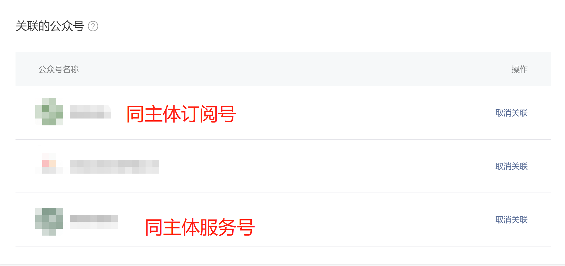你们解决了吗,我们也遇到这个问题,只会显示同一主体的公众号,不同主体的公众号和小程序互相关联也不会出现在下方。