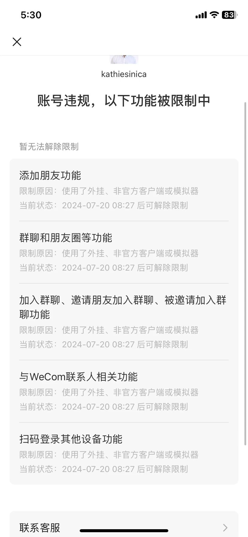 求官方大大帮我解决问题,让我不要再有这个问题了,我的微信号为啥被封了.. 哭😭 我发誓我没有用外挂啊。我的私人号和工作号有时候会切换,如果我真的开了第三方插件,为啥要封我工作号不封私人号..