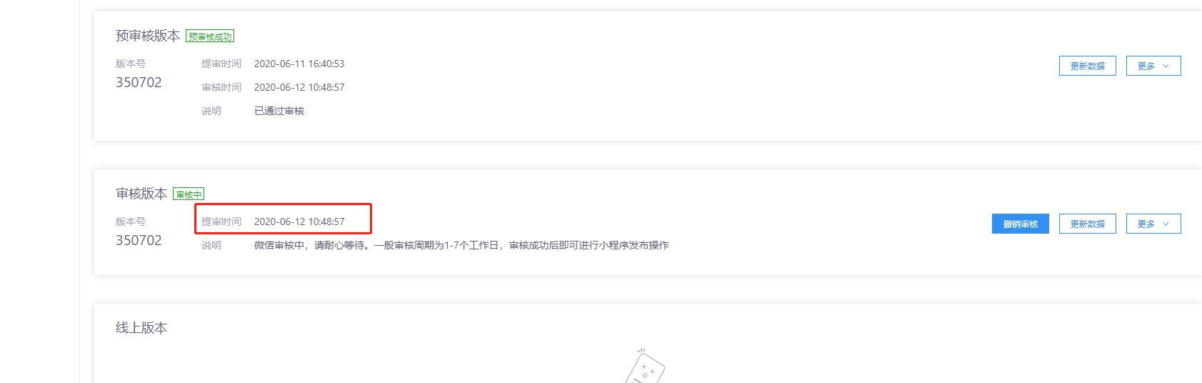 后续代码审核相关问题,可以登陆“小程序服务商助手” 小程序的客服专区联系人工客服进行反馈,客服值班时间为工作日9:00-21:00