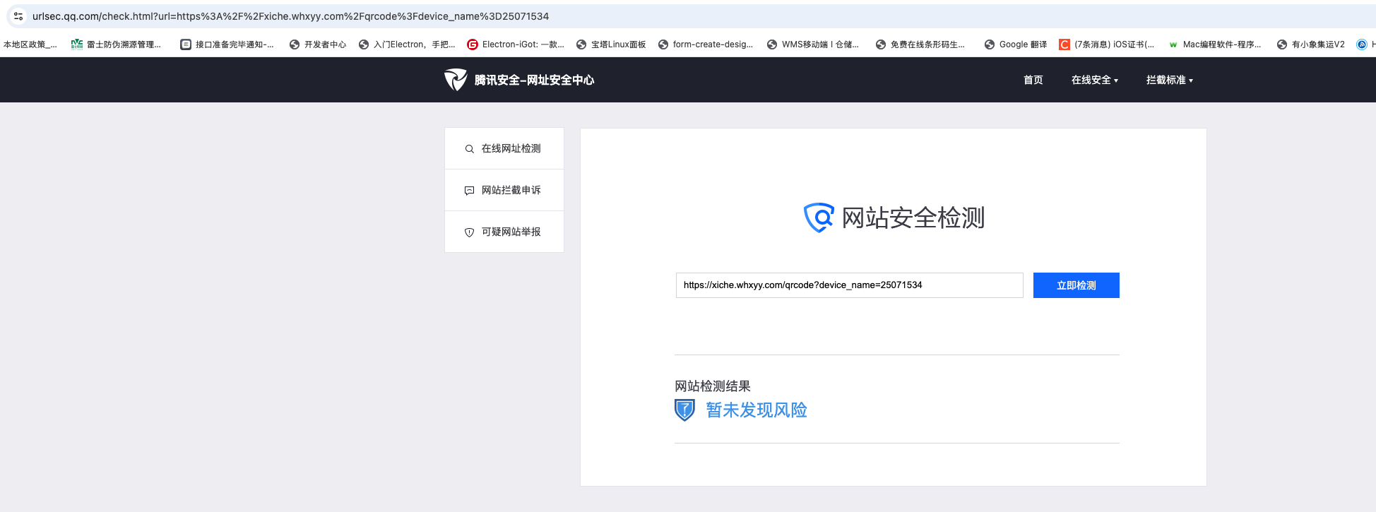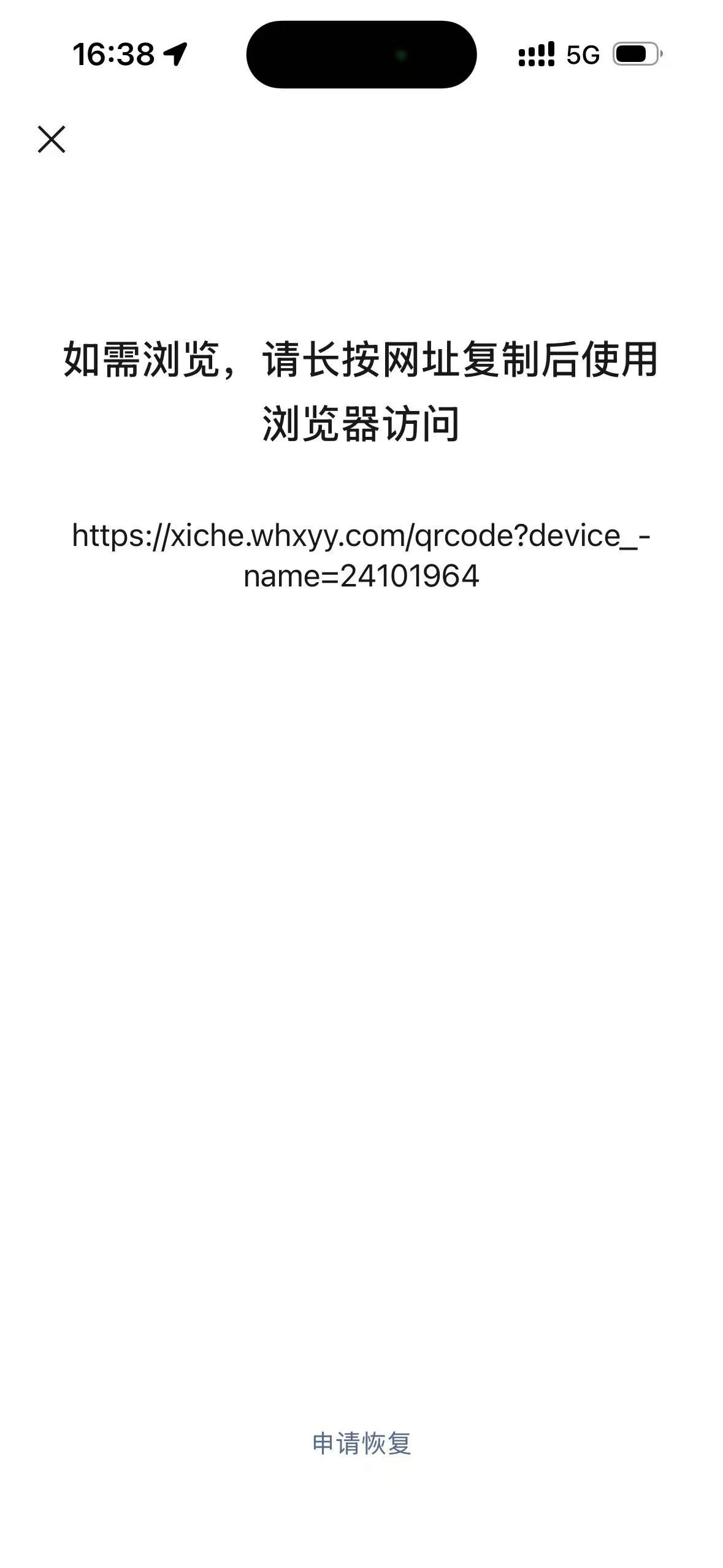 这个一个普通链接https://xiche.whxyy.com/qrcode?device_name=25071534跳到小程序,突然被拦截了,扫码不能转到小程序,具体原因是什么呢?小程序只是一个自助洗车的项目,没有任何推广功能,现在已经严重影响到业务,用户无法使用,烦请核实下原因