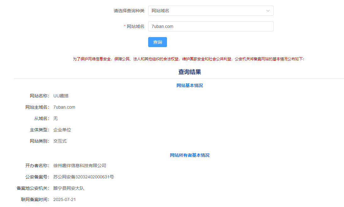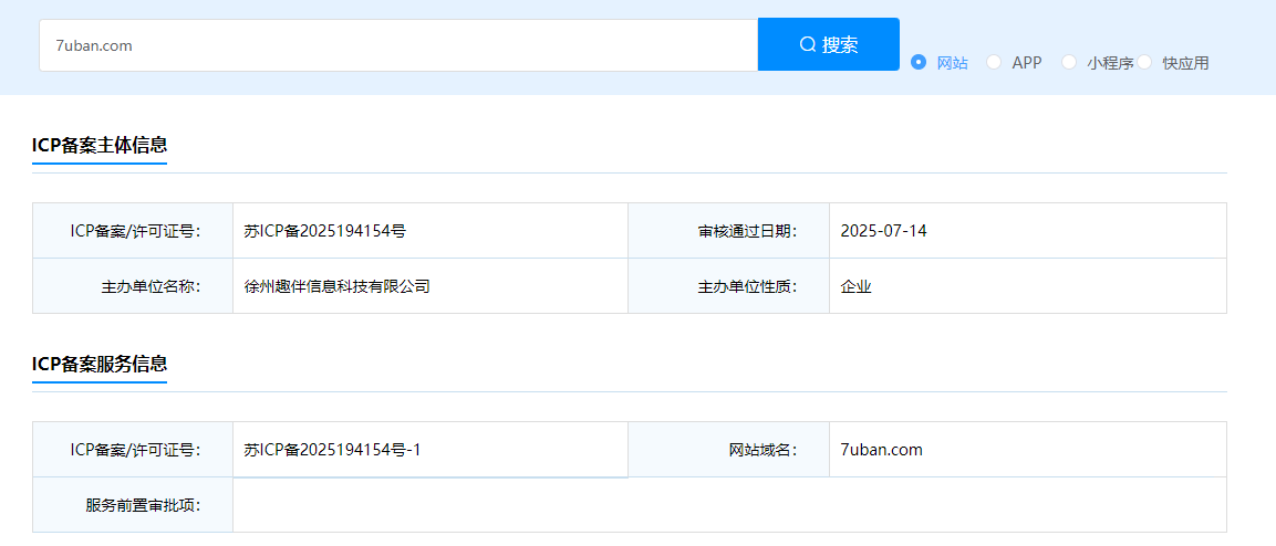 1、按照有关规定,我司已经备案,徐州趣伴信息科技有限公司(ICP备案/许可证号:苏ICP备2025194154号